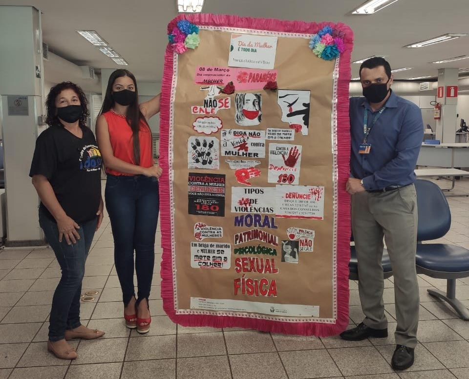 Um cartaz grande que trata do tema foi produzido pelos assistidos no Centro de Convivência dos Idosos e está exposto na agência da rua Benedito Valadares, em alusão ao Dia Internacional da Mulher, que será lembrado na próxima segunda-feira, 8 de março.
