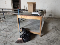 O portão de entrada era tampado com uma lona, para que as pessoas não pudessem observar o que acontecia dentro dos dois galpões.