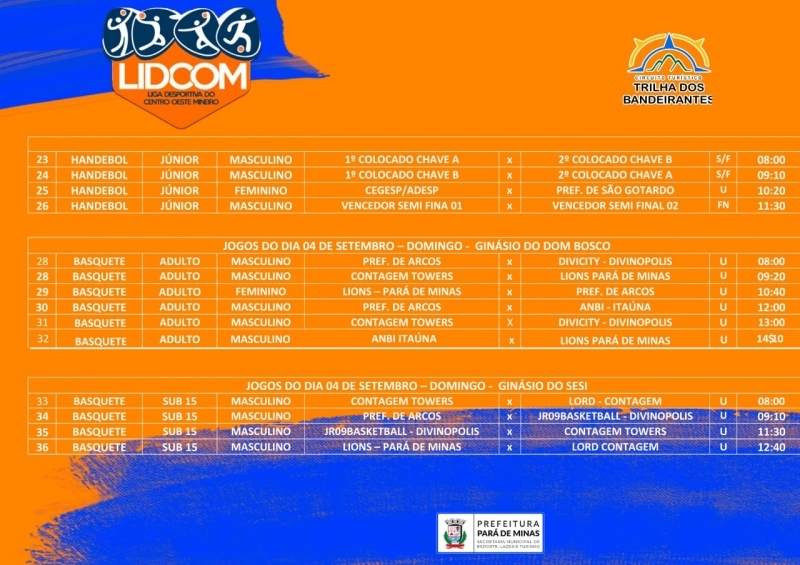 Além desta competição, Pará de Minas vai sediar uma das etapas do LIDCOM, que é uma disputa promovida pela Liga Desportiva do Centro-Oeste Mineiro.