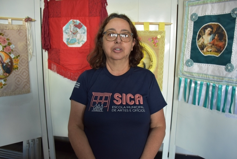 A expositora Rosemary Murta falou da produção dos estandartes que já vem recebendo muitos elogios do público visitante.