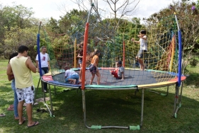 Durante a Tarde Recreativa, foram oferecidas diversas atividades, como desenho, pintura facial, cama elástica e apresentações de palhaços.