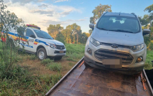 Os militares se dirigiram ao local e identificaram o Ford EcoSport, como sendo um veículo roubado. O carro se encontrava sem chave, sem bateria, com as portas direitas arrombadas, além do vidro quebrado e foi removido para o pátio credenciado do Detran MG.