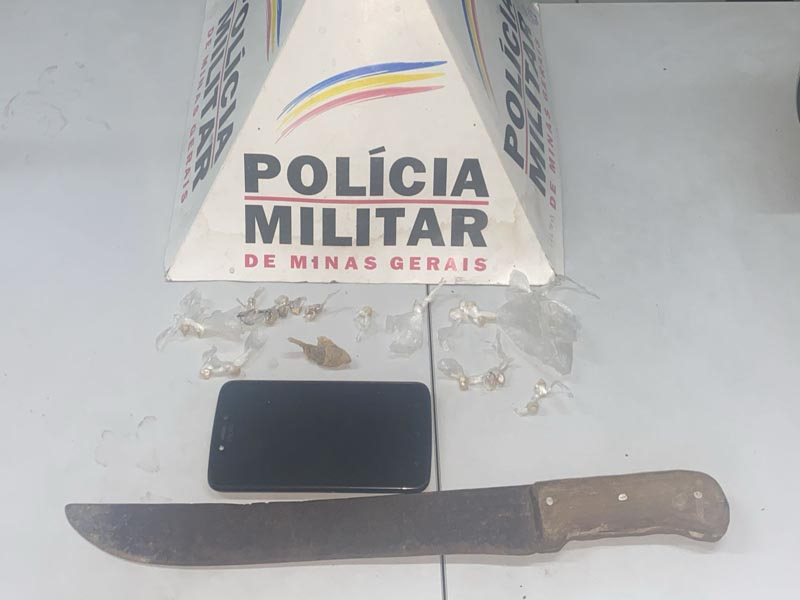 Durante as buscas foram encontradas 25 pedras de crack, uma bucha de maconha, um facão e um aparelho celular. A dupla foi conduzida à Delegacia da Polícia Civil, juntamente com os materiais apreendidos.