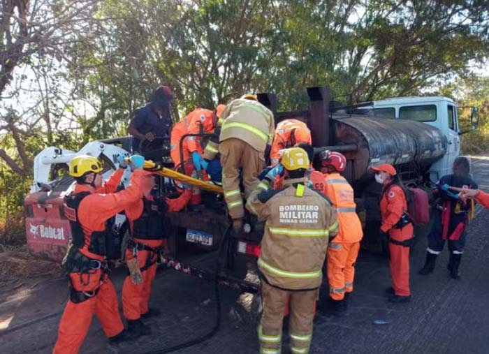 Um trabalhador de 66 anos ficou ferido após ficar com a perna presa a uma máquina de reparação de asfalto, na tarde desta quinta-feira (13), na MG-170, próximo ao km 30, em Lagoa da Prata.