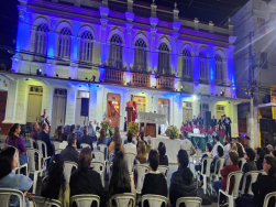 A Praça Torquato de Almeida, no centro de Pará de Minas, viveu ontem uma noite muito especial, com a celebração de uma missa em ação de graças marcando os 100 anos da Casa da Cultura, que é um dos prédios mais imponentes do patrimônio histórico da cidade. A celebração antecedeu a visita guiada ao prédio, arrancando elogios das pessoas. Para celebrar esta data tão importante, a Casa da Cultura está apresentando duas exposições.