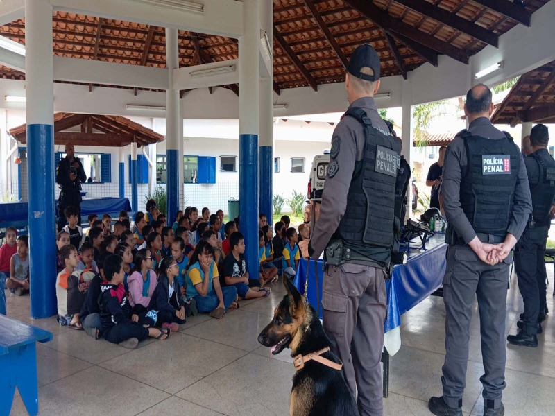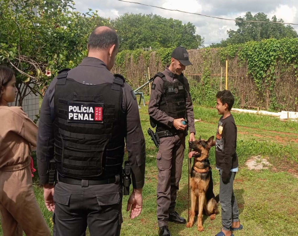 Durante a visita, os profissionais apresentaram o funcionamento da Polícia Penal, destacando suas atividades cotidianas e explicando o papel essencial que desempenham na segurança pública. As crianças tiveram a oportunidade de ver de perto os equipamentos utilizados pelos agentes e participaram ativamente das demonstrações realizadas pelo Canil, proporcionando um aprendizado interativo e dinâmico.