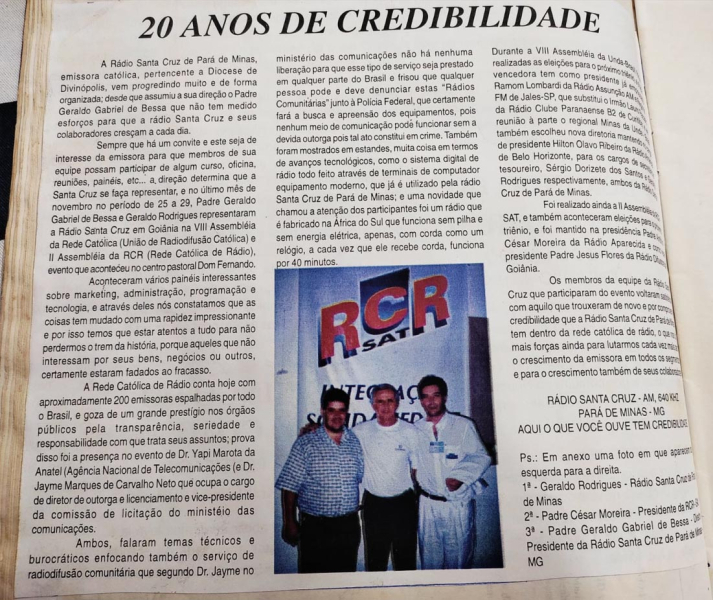 Ao longo desses 46 anos de trabalho em Pará de Minas, já vimos muita coisa acontecer. As emissoras funcionam 24 horas todos os dias do ano. Graças a Deus temos uma boa equipe calejada pelo tempo mas, aberta às inovações. Queremos reafirmar nosso compromisso que é nosso lema: “A Comunicação a serviço do Evangelho”. Essa frase está escrita em destaque na frente das emissoras para que lembremos todos os dias desse nosso compromisso.