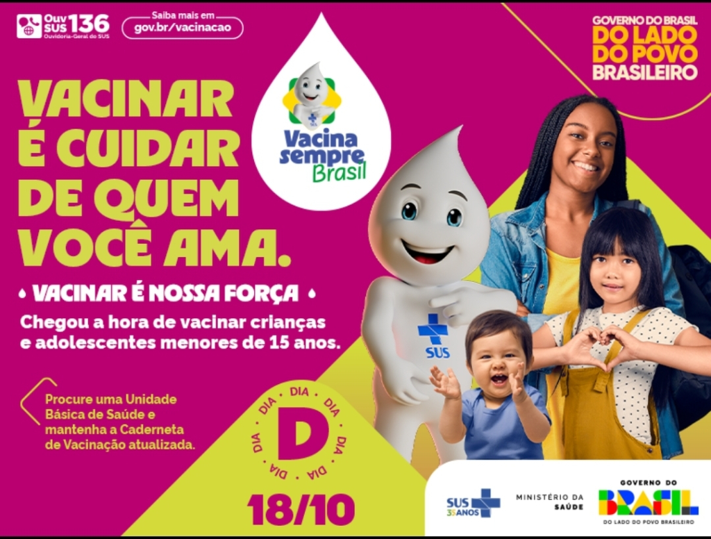 Está confirmada para este sábado (18), a mobilização em torno do Dia D da Campanha de Multivacinação, com foco na imunização de crianças e adolescentes menores de 15 anos.