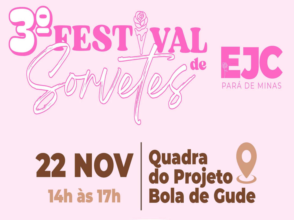 A equipe organizadora do Encontro de Jovens com Cristo (EJC) de Pará de Minas confirmou a realização da terceira edição do festival de sorvetes promovido pelo movimento. O evento beneficente tem como objetivo arrecadar recursos para viabilizar a próxima edição do EJC, mantendo as atividades e projetos desenvolvidos ao longo do ano.