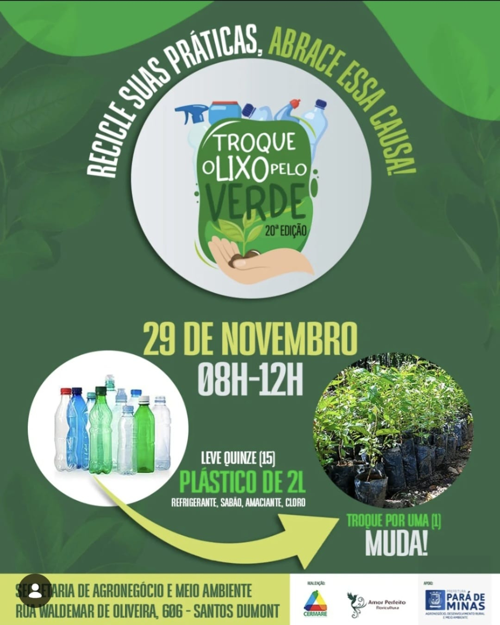 Os preparativos para a 20ª edição do projeto Troque o Lixo pelo Verde já estão em andamento em Pará de Minas. A iniciativa, idealizada pela professora Maria José Perpétua da Silva Almeida, a Maju, completa duas décadas mobilizando a comunidade para a coleta de materiais recicláveis, especialmente garrafas PET, em troca de mudas de árvores.