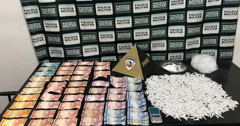 Com a porta do imóvel aberta, os militares visualizaram grande quantidade de substância semelhante à cocaína exposta, além de pinos vazios, pinos já preenchidos, dinheiro e diversos materiais utilizados para o preparo e a comercialização de drogas. Pouco tempo depois, uma jovem de 19 anos chegou ao apartamento carregando um bebê e afirmou morar ali com seu companheiro, de 20 anos.