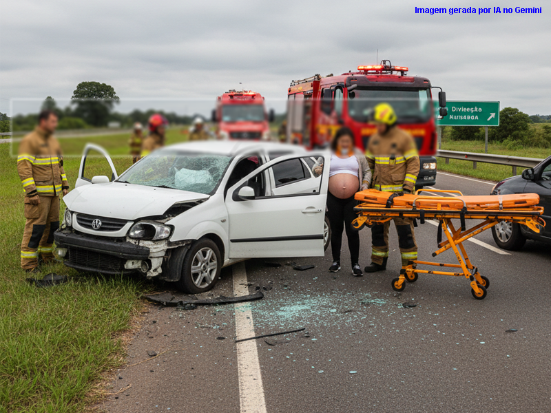 A central do SAMU recebeu um chamado informando sobre um acidente envolvendo dois carros na BR 494, nas proximidades do trevo do parque de exposições, em Divinópolis. No local, a equipe prestou socorro a uma mulher de 32 anos, que está grávida de aproximadamente 6 meses.