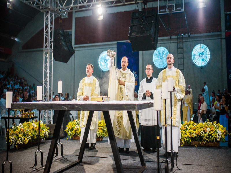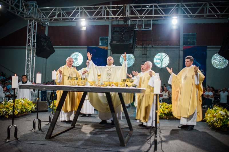 A Missa Jubilar de Encerramento começou por volta das 17h, mas muitos peregrinos chegaram ao local pouco depois das 13h. Nem mesmo o calor de 35 graus desanimou os fiéis que cantaram bastante com o grupo do “EAC de Mateus Leme”. Os jornalistas Valquíria e João Pedro, repassaram informações de segurança e ajudaram na preparação dos presentes para o momento celebrativo. A Missa Jubilar reuniu representantes das 54 paróquias, distribuídas em 25 cidades da região. Estiveram presentes cerca de 70 sacerdotes, além de diáconos e também seminaristas. Também estiveram presentes religiosos e integrantes dos muitos movimentos católicos.