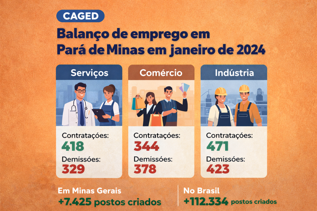O novo levantamento do Cadastro Geral de Empregos no Brasil, conhecido pela sigla de Caged, confirmou os desafios da economia de Pará de Minas, que deixou três setores no vermelho, no mês de janeiro.