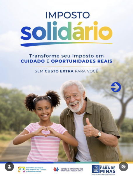 A campanha Imposto Solidário foi relançada em Pará de Minas, através de uma parceria da Secretaria Municipal de Assistência e Desenvolvimento Social e os Conselhos Municipais dos Direitos da Criança e do Adolescente e dos Direitos da Pessoa Idosa.