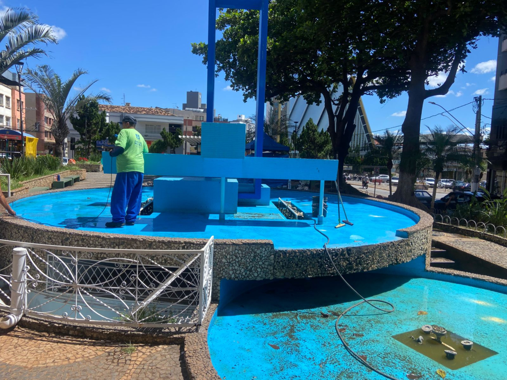 Enquanto isso, a equipe de manutenção segue atuando no local. Maria da Conceição Cardoso, uma das responsáveis pela limpeza da fonte, funcionária da INTS, explica que as ações agora serão realizadas ao menos uma vez por semana.