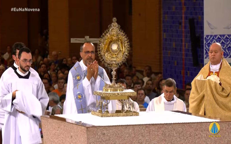 Além de milhares de devotos presentes no Santuário. São nove dias que antecedem a grande Festa de Nossa Senhora Aparecida, no dia 12 de outubro, que neste ano traz o tema principal: “Com Maria, Mãe da Esperança, conhecer Jesus e cuidar da Vida”. O andor da edição 2025 da festa de Nossa Senhora Aparecida, em São Paulo, mostra a imagem em meio a um tesouro. Um manto com bordados em pedrarias e uma coroa iluminada também ornamentam a imagem. O ostensório utilizado para a benção aos devotos, também é rico em detalhes e gemas.