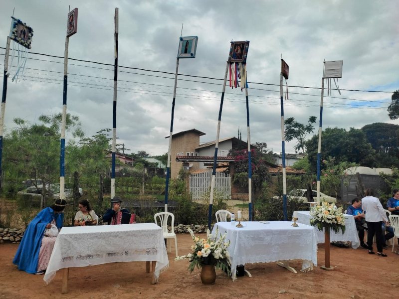 A Santa Missa foi celebrada ao ar livre, às 11h, no pátio da Capela Nossa Senhora das Graças. O tempo chuvoso não impediu a participação dos devotos. Maior do que os desafios enfrentados por eles é a devoção mariana que cultivam.  Tal devoção é unanimidade entre congadeiros e moçambiqueiros. Que a Virgem Maria continue abençoando esse povo que, ao longo da história, enfrentou muitas dificuldades sem nunca desistir da fé.