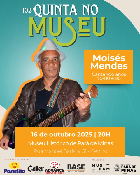 O projeto Quinta no Museu desta semana será marcado pela nostalgia dos sucessos dos anos 1970, 80 e 90. Estamos falando do show de Moisés Mendes, que apresentará ao público um repertório baseado no estilo ‘Soft Rock’.