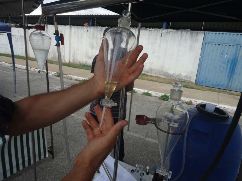 O processo chamou atenção até mesmo de escolas que levaram turmas de estudantes para acompanhar o curioso processo. Um dos responsáveis pela comercialização do óleo essencial, João Marcos Morais, converso conosco sobre a extração do material.