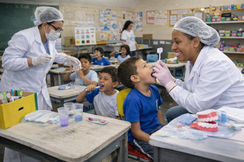 Além da escovação supervisionada, foi promovida uma avaliação odontológica das crianças e fornecidas orientações sobre hábitos saudáveis. A dentista Fernanda Lobato, do Setor de Estratégia Saúde da Família, informou que o foco é a prevenção: