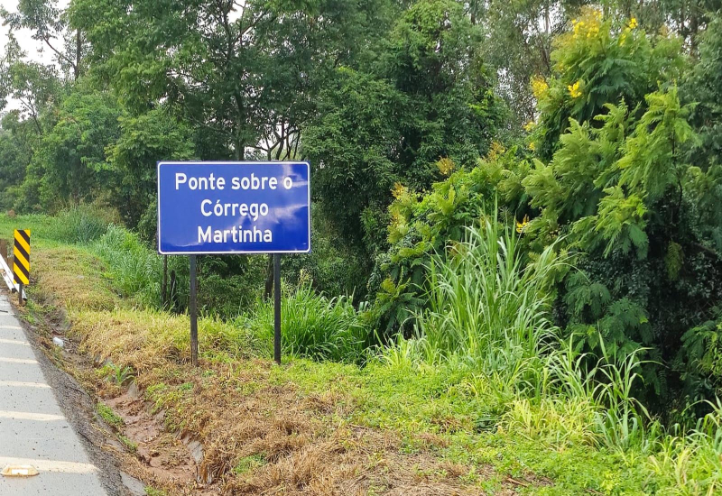 De cor azul, com escrita na cor branca, ela traz a seguinte informação: “Ponte sobre o Córrego Martinha”. Estudantes já pararam no local para fotografar a placa, enquanto motoristas passaram a questionar a existência do referido córrego.