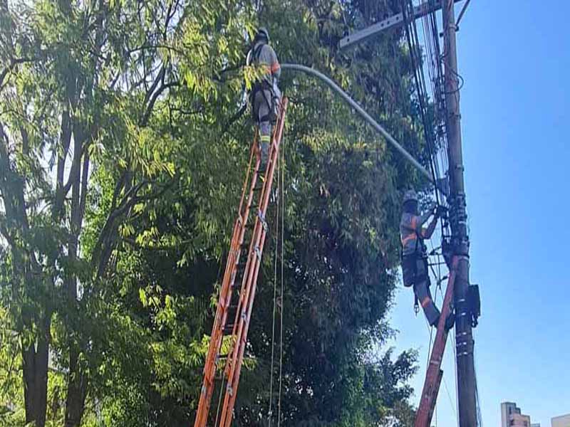 Com trabalho acumulado, já que a cidade ficou muitos meses sem o serviço de substituição de lâmpadas queimadas, a Ilumiterra tem se esforçado para colocar o serviço em dia.