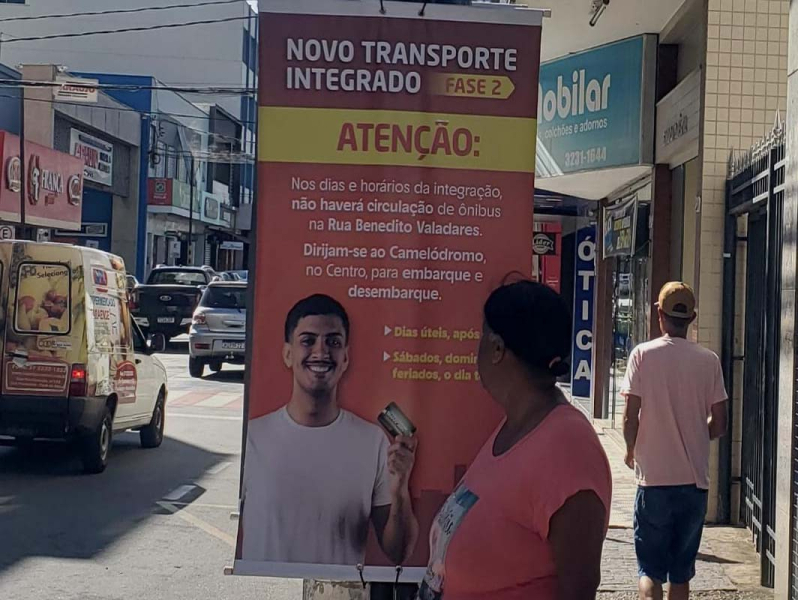 Para que os passageiros conheçam todos os detalhes da implantação do sistema de integração, sobretudo na região central, a prefeitura instalou banners e adesivos em todos os pontos de ônibus da Rua Benedito Valadares e da Rua dos Expedicionários.