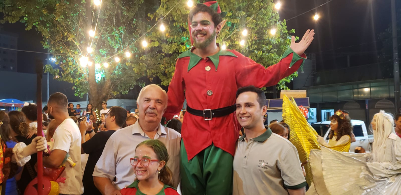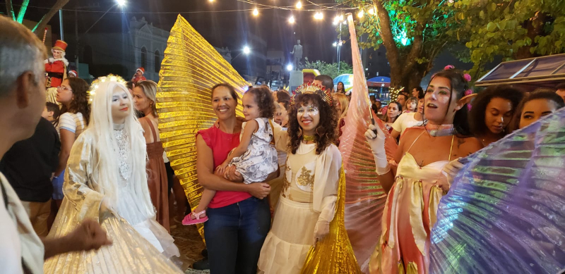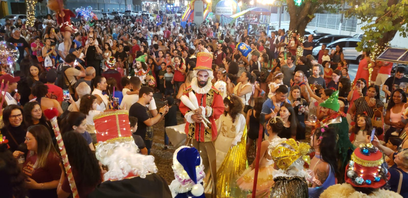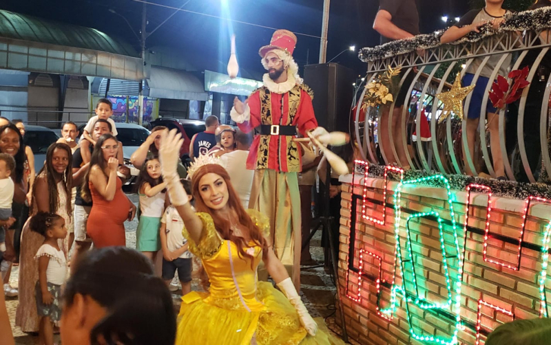 A programação teve início às 18h, com o acendimento das luzes e da árvore de seis metros que enfeita a praça. Por volta das 19h30, Papai Noel chegou acompanhado dos personagens do Grupo Circo da Meia-Noite, após percorrer diversos bairros da cidade.
