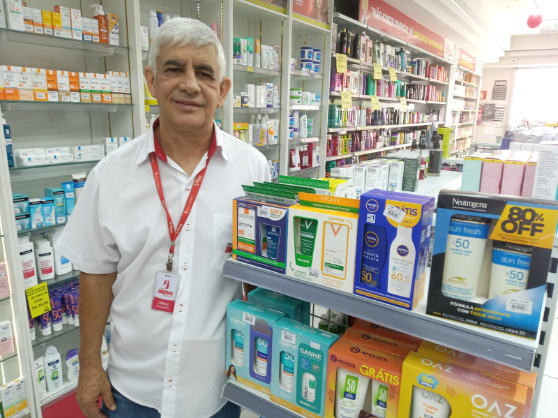 O farmacêutico Clifford Júnior Resende, da Drogaria Inova, destaca que a procura cresce especialmente nesta época do ano, impulsionada pelas viagens e pela maior exposição solar.