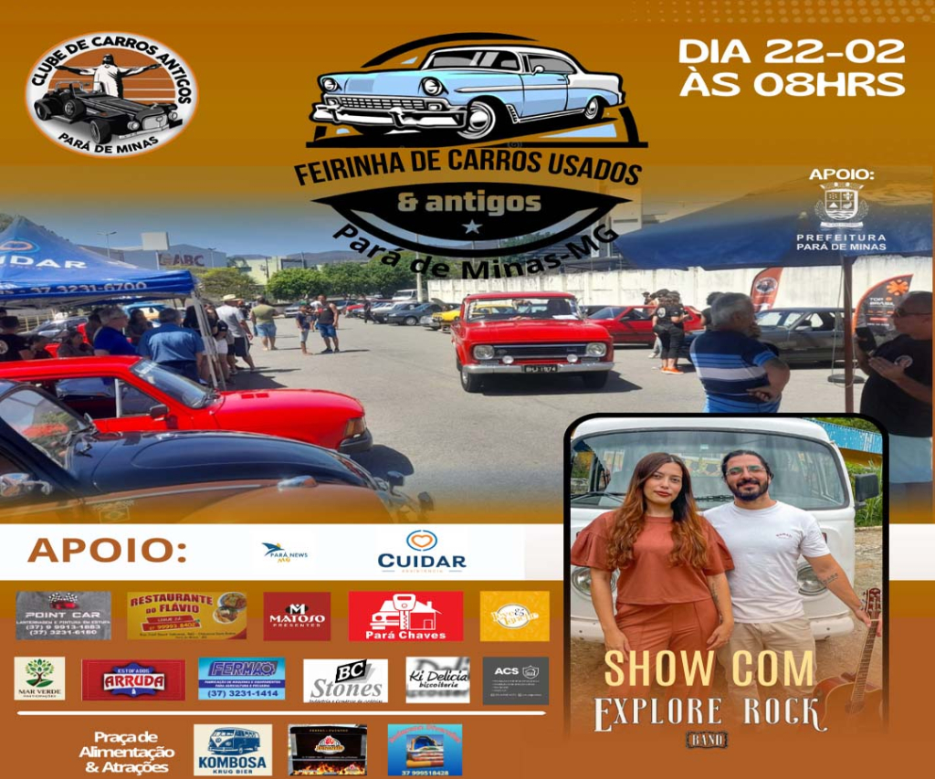 Além da exposição de veículos, o público poderá assistir ao show da banda Explore Band, do casal de Pará de Minas que viaja pelo Brasil e países da América do Sul, na sua Kombi motorhome. Eles vão falar um pouco da sua experiência nas viagens.