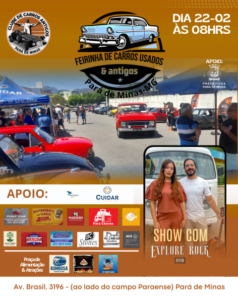 Neste domingo (22), o Clube de Carros Antigos de Pará de Minas vai promover a sexta edição da Feirinha de Carros Usados & Antigos, ao lado do Campo do Paraense.
