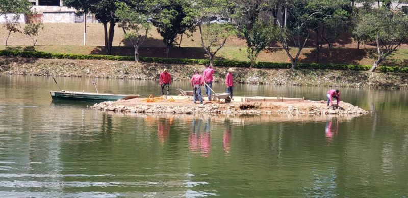 Fonte luminosa começa a ser instalada na ilha do Parque do Bariri