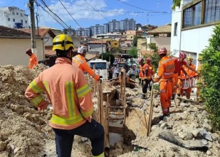 Um homem foi soterrado quando fazia manutenção dentro de uma vala de cerca de 1,8 metros para passagem de tubulação do esgoto em Sabará, na região metropolitana de Belo Horizonte, nesta segunda-feira (27 de fevereiro).
