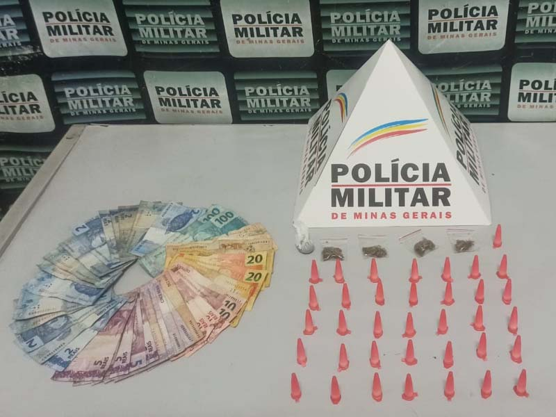 No local foram encontrados 36 pinos de cocaína, 05 buchas de maconha, R$565,00 em dinheiro e 01 telefone celular.