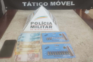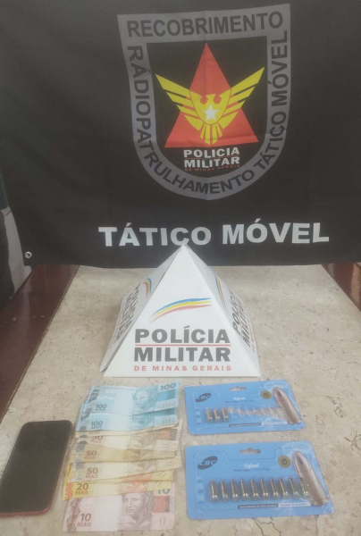 Durante a ação, os militares localizaram duas cartelas de munições calibre 9mm, somando 13 unidades. Além disso, foram apreendidos um aparelho celular e uma quantia em dinheiro, cujo valor não foi divulgado. Todo o material foi recolhido e encaminhado para a Delegacia, junto com o suspeito.