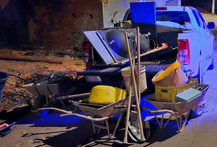 Na casa do homem de 37 anos, que já possui várias passagens policiais, os militares encontraram grande quantidade de materiais de construção, incluindo pias, tanques, bancadas de granito, carrinhos de mão, ferramentas e fios elétricos.