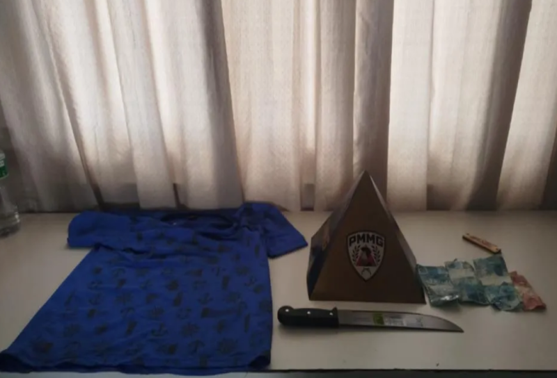 A vítima reagiu e entrou em luta corporal com o criminoso, que conseguiu fugir levando os produtos. Na sequência, o homem seguiu até uma loja de roupas próxima e, novamente armado com o facão, ameaçou a atendente e roubou R$ 413 em dinheiro. Após buscas na região, os policiais localizaram o suspeito.