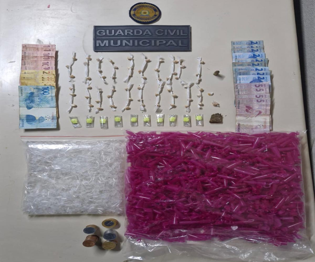 Ao notar a presença da viatura, o jovem tentou fugir, mas foi rapidamente abordado. Durante a revista pessoal e vistoria na motocicleta, os guardas encontraram 62 pedras de crack, 10 porções de ecstasy, uma bucha de maconha, além de um cartucho intacto de munição calibre 9mm, um celular de procedência duvidosa, R$ 366,35 em dinheiro e diversos microtubos utilizados para embalar cocaína.