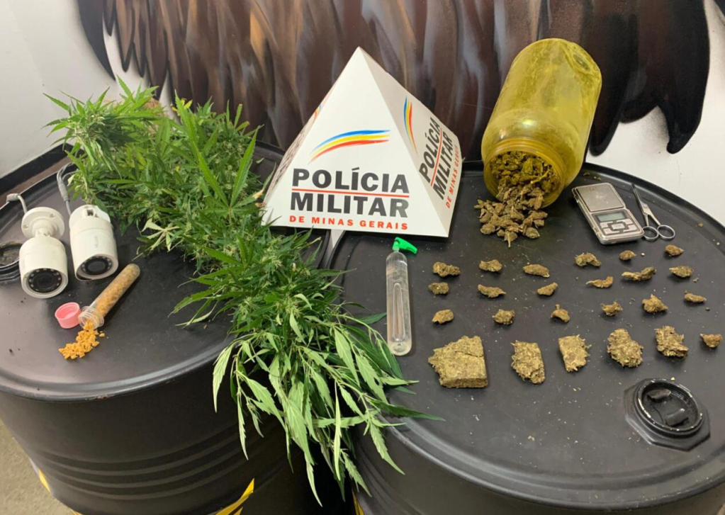 Ao notarem a presença da viatura, ambos tentaram fugir, mas foram rapidamente abordados pelos policiais. Durante a abordagem, foram apreendidos aproximadamente 200 pedras de crack, cinco tabletes de maconha prensada, um pote contendo mais de 100 buchas de maconha, um pé de maconha com cerca de um metro de altura, um frasco de lança-perfume, uma balança de precisão, uma tesoura e duas câmeras de segurança.