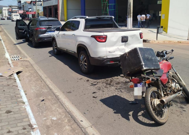 Um motociclista ficou ferido após se envolver em um acidente com dois carros, na avenida Presidente Vargas. Segundo relato do condutor de um dos automóveis, o trânsito estava parado quando ele ouviu o barulho e sentiu o impacto de uma colisão.