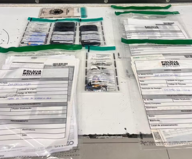 Com ele, foram apreendidos 72 fotos 3x4 de possíveis vítimas, 12 cartões bancários, 19 folhas de cheque e diversos comprovantes de endereço — indícios de que o esquema envolvia várias pessoas. Ainda de acordo com a PM, o suspeito já possui passagens anteriores por estelionato. Ele foi encaminhado à delegacia da Polícia Civil.