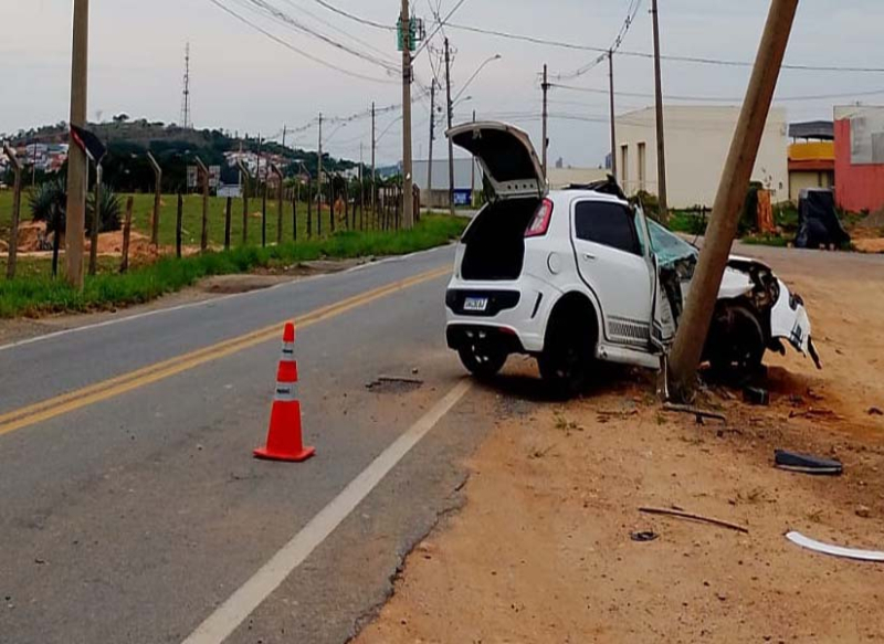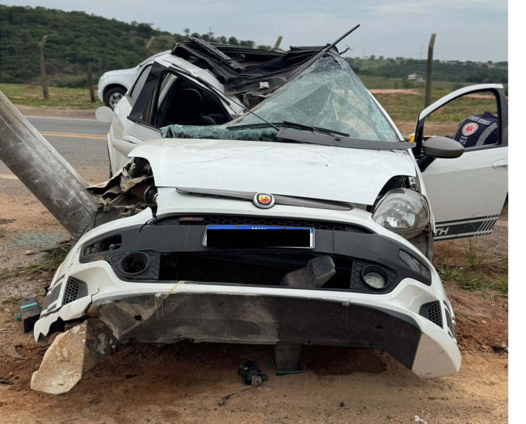 Um grave acidente foi registrado na rodovia AMG-0335, quilômetro 1, em Divinópolis. O condutor de um Fiat Punto, de 29 anos, perdeu o controle da direção e acabou batendo violentamente contra um poste de energia.