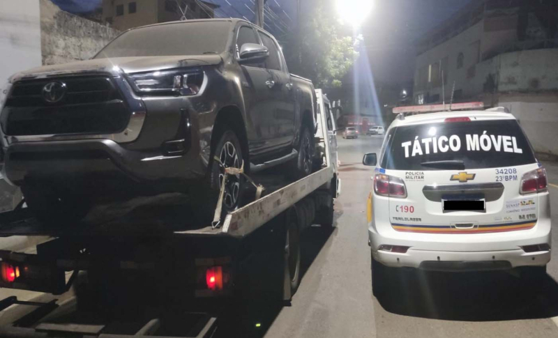 Militares foram acionados por uma empresa de seguros veicular após o rastreador de uma caminhonete furtada indicar localização em Divinópolis. O veículo, uma Toyota Hilux, havia sido furtado no dia 7 de julho deste ano, na cidade de Betim, região metropolitana de Belo Horizonte.