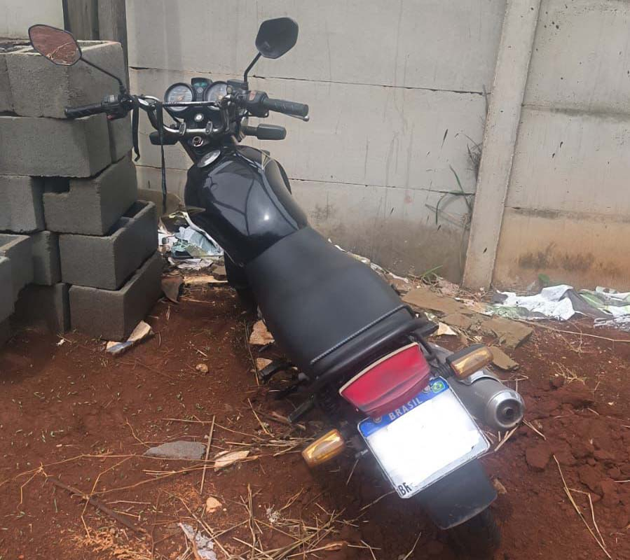 Durante patrulhamento na Avenida Orlando Maurício dos Santos, nas proximidades da unidade do SAMU,em Pará de Minas, militares receberam informações de que uma motocicleta estaria escondida atrás de um muro de placas.