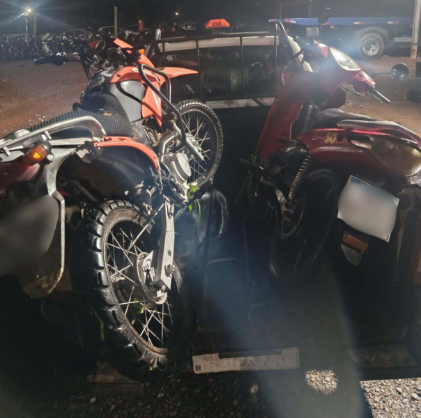 As motocicletas recuperadas foram restituídas no próprio local aos responsáveis pelo pátio, que informaram que os veículos estavam sem bateria e sem combustível, o que impediu que fossem acionados pelos autores. A ocorrência, juntamente com o material apreendido, foi apresentada na Delegacia de Polícia Civil para as providências cabíveis.