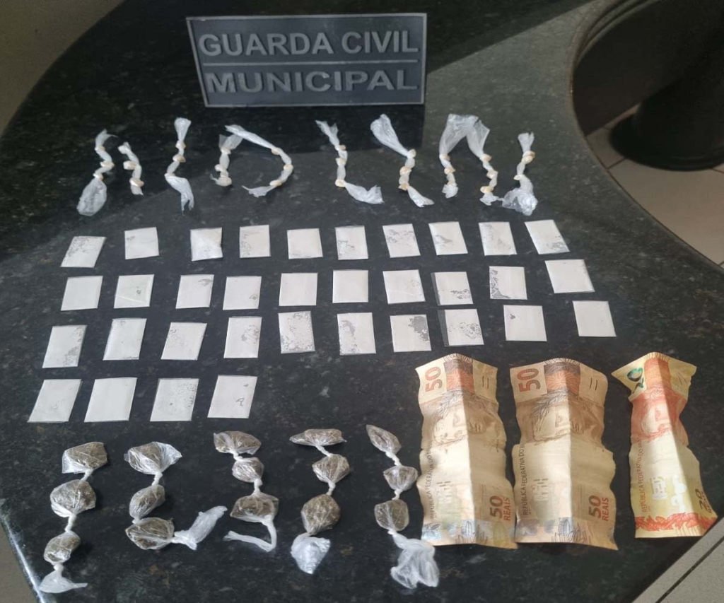 Durante a busca pessoal, os agentes encontraram diversas porções de drogas já fracionadas e prontas para a venda. Ao todo, foram apreendidos 34 papelotes de cocaína, 30 pedras de crack, 15 buchas de maconha, além de R$ 120 em dinheiro.