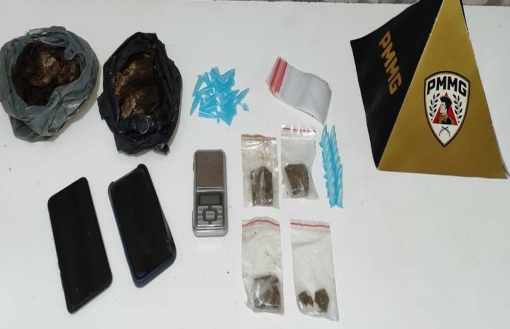 No entanto, ele e o comparsa foram contidos pelos militares. Durante a revista, os policiais encontraram com um dos homens 16 pinos de cocaína e materiais utilizados para a dolagem da droga. Em seguida, a equipe realizou buscas em um estabelecimento comercial pertencente a um dos suspeitos, onde foram apreendidos uma barra e quatro buchas de maconha, uma balança de precisão e 19 pinos vazios.