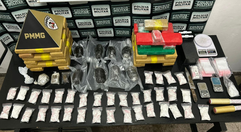 Dando continuidade à ocorrência, a equipe policial deslocou-se até a residência onde o suspeito estava, local que já era alvo de diversas denúncias indicando que seria utilizado para armazenar entorpecentes. No imóvel, os militares encontraram grande quantidade de drogas e materiais relacionados ao tráfico.