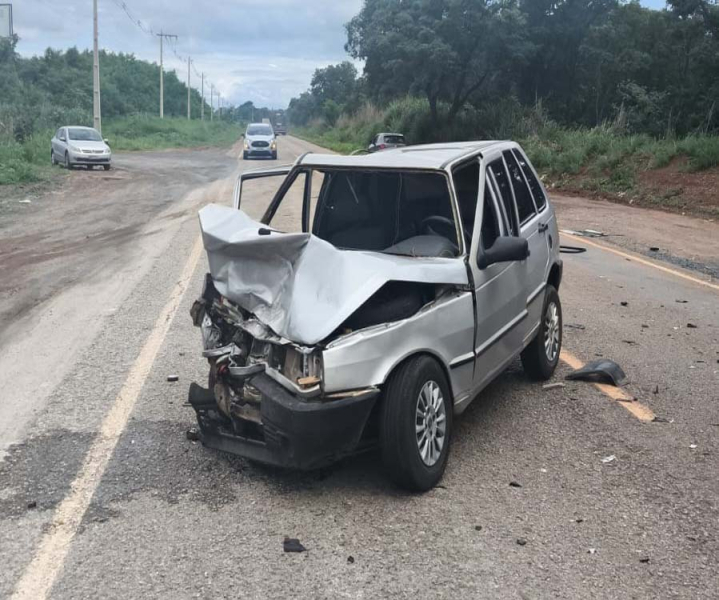 A Polícia Militar Rodoviária foi acionada para atender a uma colisão frontal na rodovia MG-060, na altura do km 151, no município de Papagaios. O acidente envolveu dois automóveis: um VW/Voyage e um Fiat Uno Mille.
